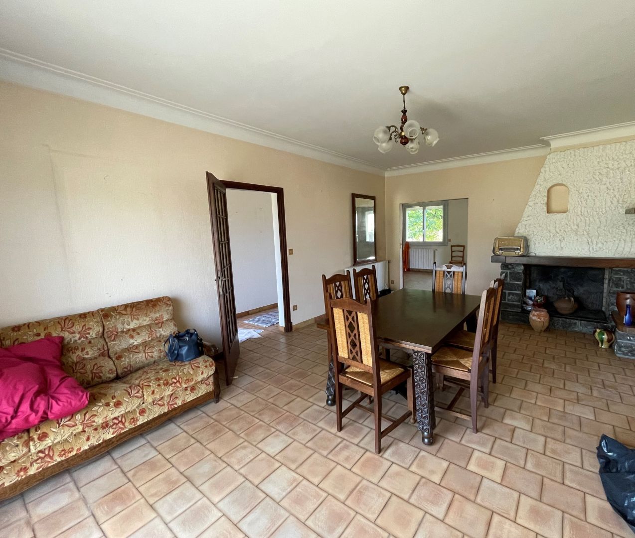 A L'OUEST DE TARBES, MAISON A USAGE D'HABITATION DE TYPE 5 D'ENVIRON 120 M² COMPRENANT : une entrée desservant un salon-séjour-cuisine d'environ 50 m² avec une cheminée, un cellier d'environ 10 m², trois chambres (13,12 et 12 m²), une salle de bain (8 m²) et un wc séparé. Le tout sur une parcelle arborée et clôturée d'environ 2500 m². Chauffage au gaz de ville. Double vitrage, volets roulants électriques.
