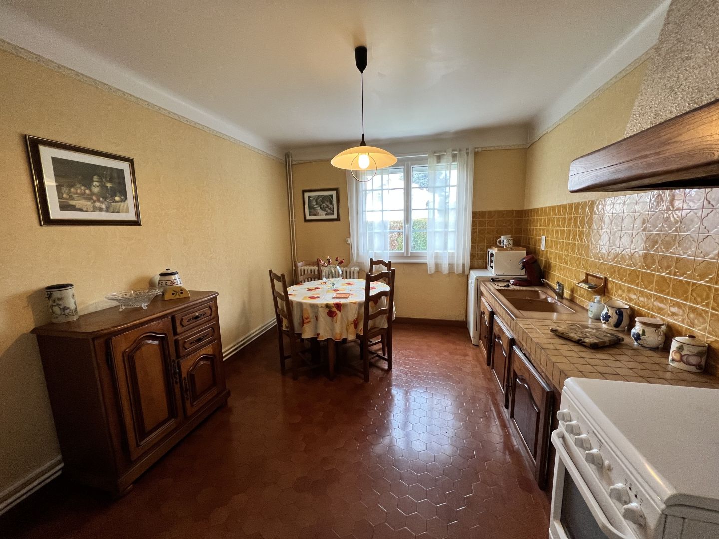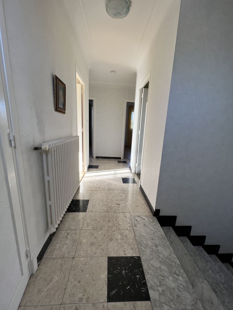 PROCHE DES COMMODITES, MAISON TRADITIONNELLE SUR DEUX NIVEAUX DE TYPE 5 D'ENVIRON 140 M² COMPRENANT : au rez-de-chaussée, un hall d'entrée desservant un salon-séjour d'environ 42 m² avec une cheminée donnant sur une terrasse en exposition Sud, une cuisine indépendante aménagée, un wc séparé avec un point d'eau. A l'étage, un palier desservant quatre chambres (10,10,12 et 14 m²) dont deux donnant sur un balcon en exposition Sud, une salle de bain ainsi qu'un wc séparé. Le tout sur une parcelle arborée et clôturée d'environ 530 m² comprenant un garage de 35 m² pouvant accueillir deux véhicules ainsi qu'un sous-sol de 28 m². Double vitrage. Eléctricité récente. Chauffage au gaz de ville.Toiture en bon état.