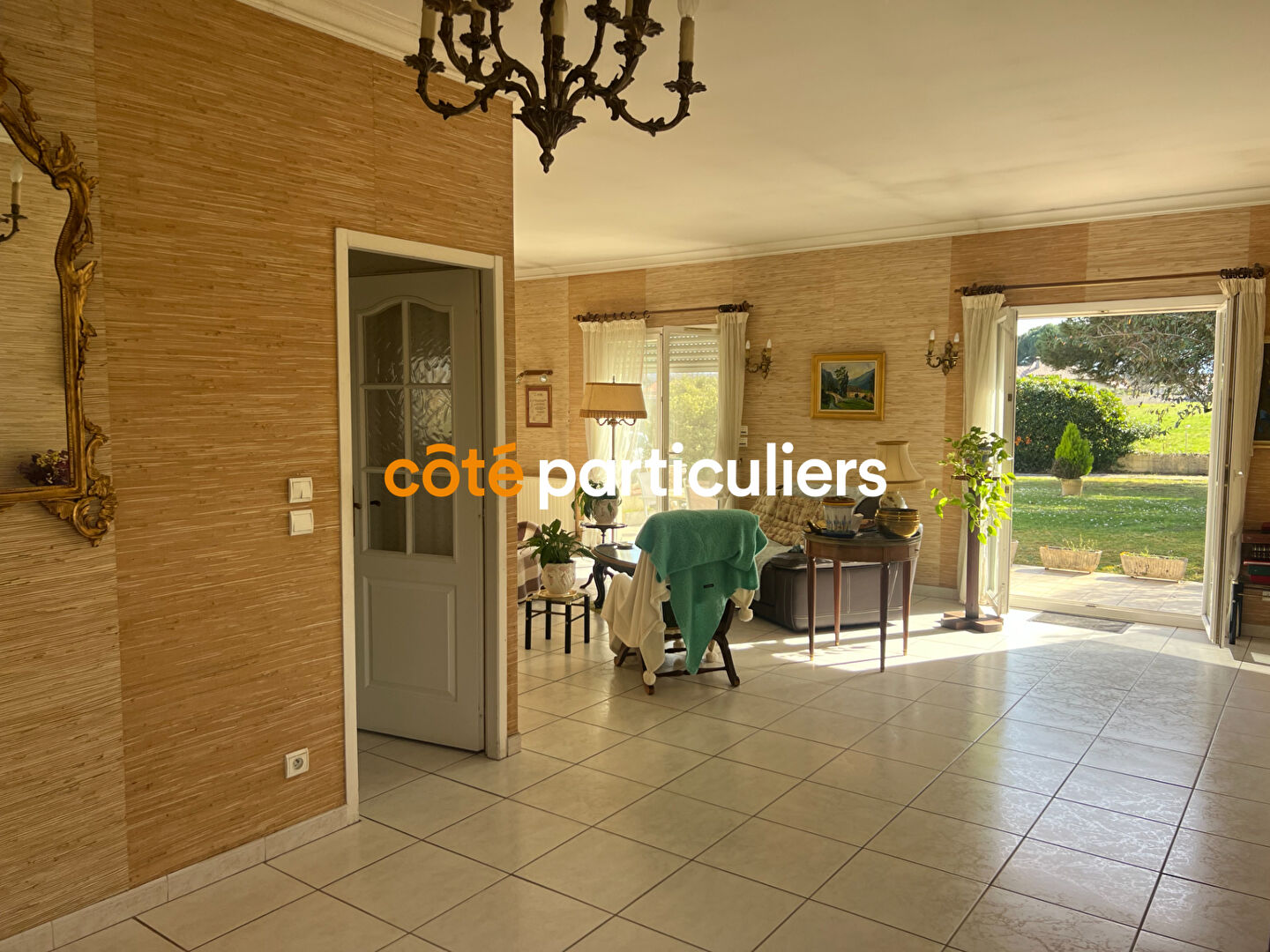 EXCLUSIVITE SECTEUR AUREILHAN, PROCHE DE TOUTES LES COMMODITES, DANS UNE IMPASSE AU CALME AVEC UNE VUE DEGAGEE SUR LA CHAINE DES PYRENEES, MAISON DE PLAIN-PIED DE TYPE 6 D'ENVIRON 130 M² COMPRENANT : une entrée avec placard desservant un salon-séjour de 41 m² donnant sur une terrasse d'environ 30 m² en exposition Sud, une cuisine indépendante aménagée et équipée, trois chambres dont deux avec placards et point d'eau, un bureau de 12 m² pouvant servir de chambre, une salle de bains avec baignoire et douche ainsi que deux wc séparé. Le tout sur une parcelle arborée et clôturée de 1000 m² comprenant un garage en sous-sol d'environ 80 m² avec une chaufferie (Avec porte sectionnelle électrique). Menuiserie double vitrage en PVC. Volets roulants électriques. Assainissement collectif conforme. Chauffage individuel au gaz de ville (chaudière récente à condensation). Store banne et portail électriques. Rafraîchissement intérieur à prévoir.